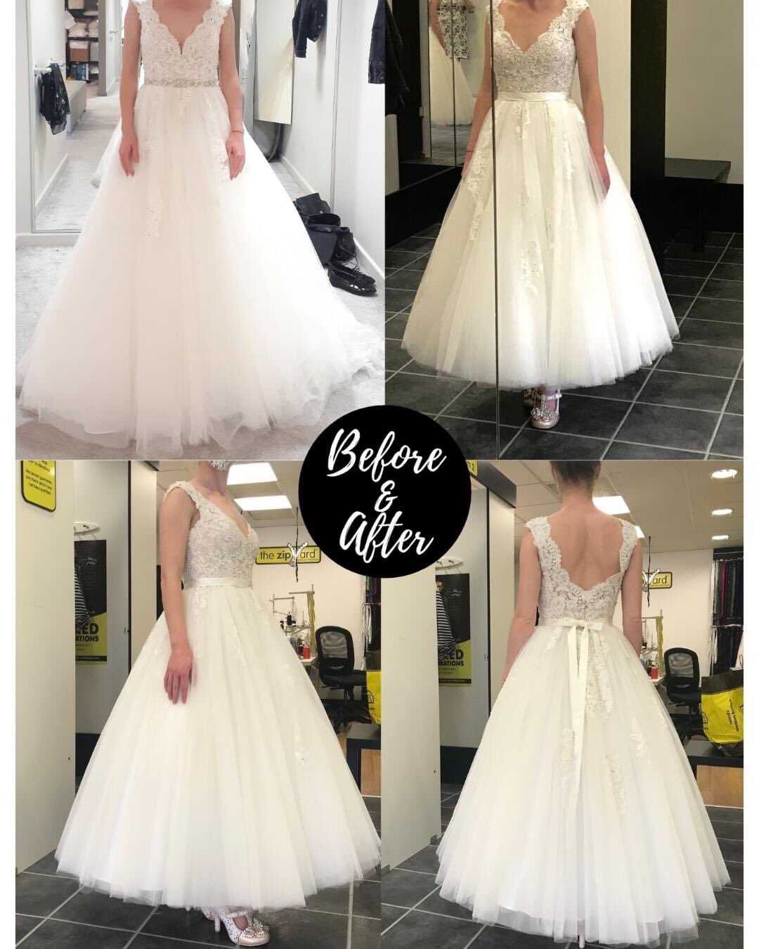 wedding dress back alterations before and after